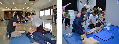 イベントなどを通じて、ケガや病気を未然に防ぐための方法(予防救急)の普及に取り組んでいます。また、心肺蘇生法やAEDの使い方が学べる、救命講習会を開催しています。