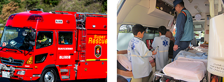 病気やけがなどで命が危険な状態にある人のところへ駆けつけ、速やかに医療機関へ搬送します。