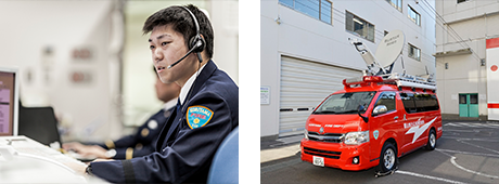 119番通報を受信し、災害、救急事業の規模に応じた適切な部隊を編成し、出動命令を出します。また、関係機関などとの情報統制を行い、現場活動の支援をするほか、消防本部の情報セキュリティの中核を担っています。