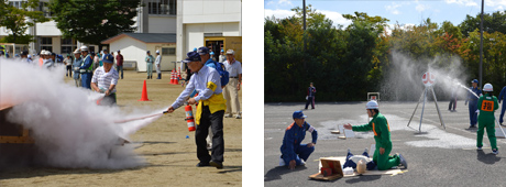 大規模災害時には、地域で協力し合う「共助」の取り組みが重要であることから、自主防災組織などの訓練指導に取り組んでいます。また、事業所の自衛消防隊の育成を目的に、自衛消防操法大会を開催しています。