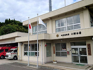 小野分署 小野分署 所在地 所在地:〒963-3401 田村郡小野町大字小野新町字知宗57-1 TEL:0247-72-2630 FAX:TELに同じ E-mail: 消防組合について 組合の紹介 管理者等の紹介 組合議会の紹介 防災展示ホールのご案内 郡山地方広域消防組合組織図 こおりやま消防消防安全・安心基本指針 各署所所在一覧 例規集 郡山地方広域消防組合人材育成基本方針 統計・公表 統計 消防概況 消防年報 各種統計 公表 財政公表 人事行政 個人情報ファイル簿 情報公開制度と個人情報保護制度の運用状況(令和6年度) 職員の退職管理の状況 女性活躍推進法に基づく取組み 定期監査及び行政監査の結果 公共施設等総合管理計画 第六次環境にやさしい郡山地方広域消防組合率先行動計画 審査基準 危険物施設の審査基準 無窓階の取扱い 職員採用試験案内 郡山地方広域消防組合職員(令和8年4月1日採用予定)採用候補者試験 申請書等ダウンロード 電子申請・各種申請書 刊行物 ふれあい消防119 消防キャリアブック 事業所向け防火教育用リーフレット 火災予防 予防救急 自然災害への備え 119番通報のかけ方